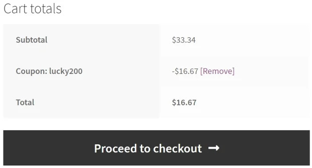 Now, if our shoppers add the “LUCKY200” coupon to their carts, they’ll get 50% off all products in the “Books” category as long as they’re one of the first 200 customers. Any other products are in the cart will remain full price.